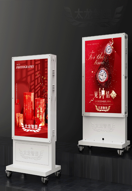 LED廣告機是集互聯網、物聯網、遠程交互等功能的戶外終端設備,具備亮度高、高顯色系數、自帶溫感裝置能自動調節亮度等特點的視頻播放裝置;且外觀靚麗輕盈,設置了可移動推拉輪,方便移動;結構簡單且為落地式一體機設計,方便安裝以及管理。